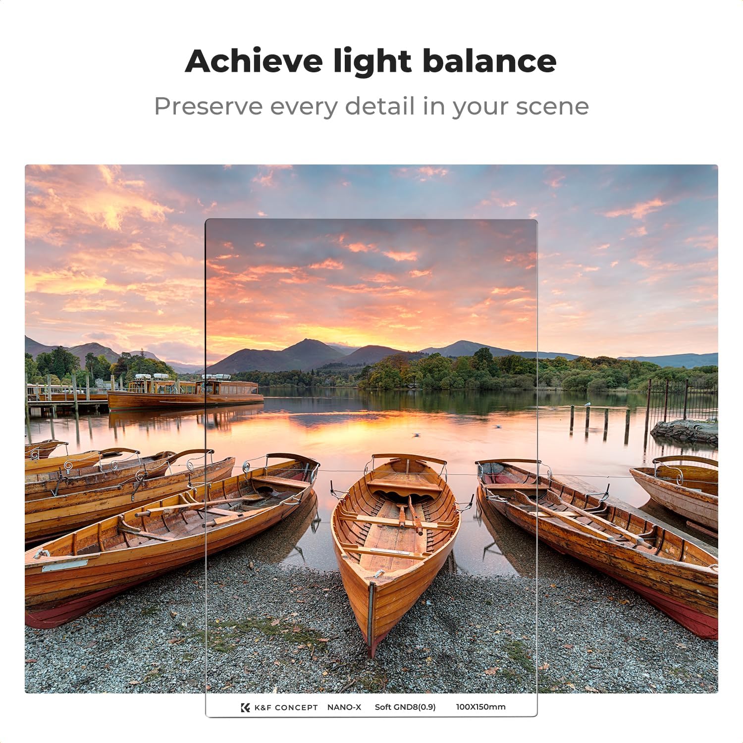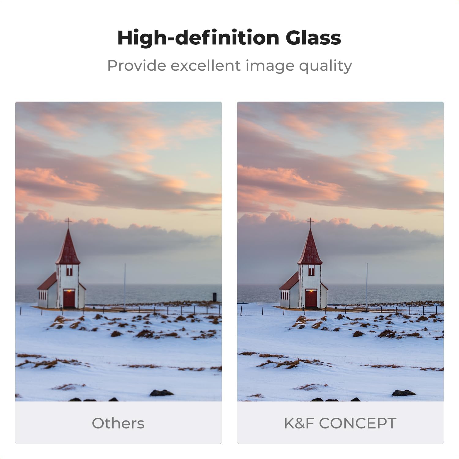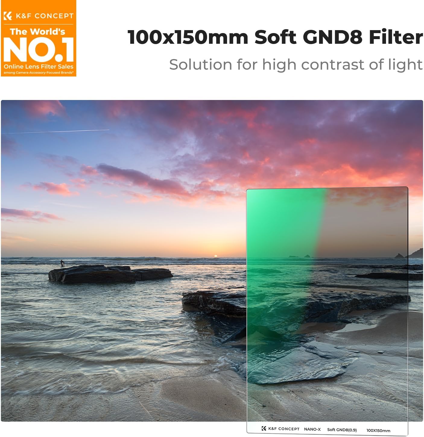 - K&F ConceptのソフトGND8フィルターニュートラル密度は、独自の研究開発段階コーティングを採用しており、紫外線から近赤外線までの光は均一に通過します。