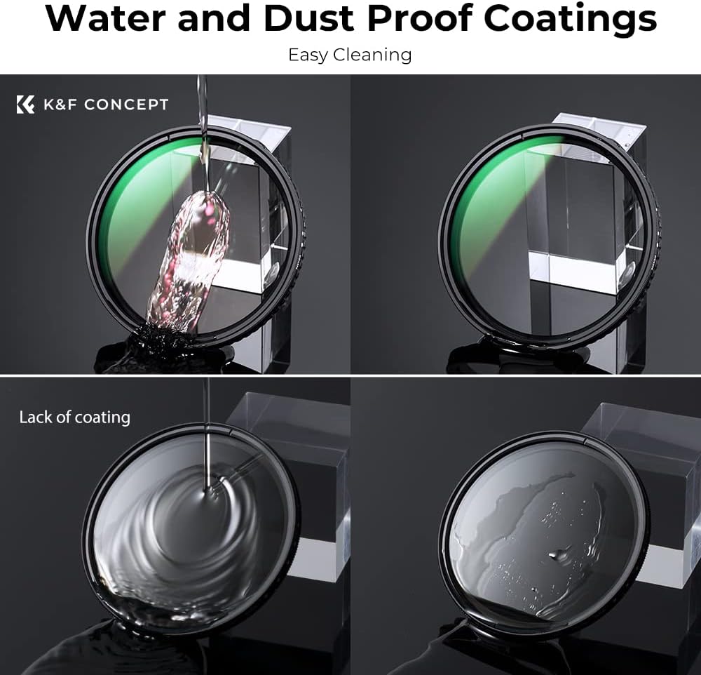 - 【28 Multi-Layer Coatings】K&F Concept optical engineers developed a new Nano coating layer technology, offering multi-layer waterproof, oil-repellent, and scratch-resistant features and protecting the valued lens.