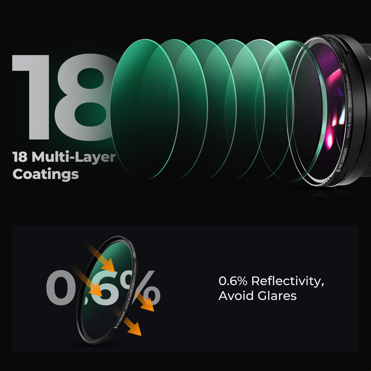 • 【18層の多層コーティング】ガラスの両面にはナノメートルコーティングが施されており、フィルターの透過率を確保し、フィルターからの反射を効果的に低減します。
