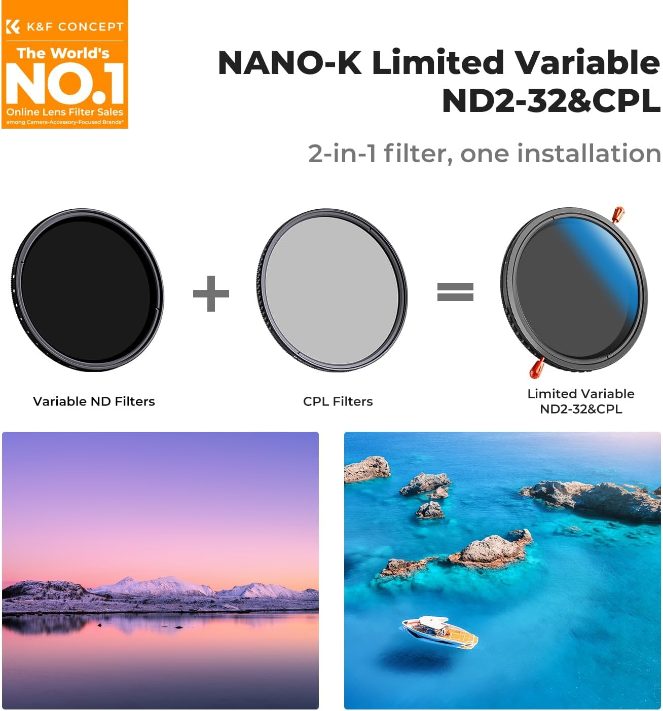 - 【1つの可変ND&CPLフィルター】1つのフィルターにはNDフィルターとCPLフィルター機能があり、レンズに入る光の量を制御して空を暗くするだけでなく、水やガラスなどの非金属からの不要な反射を防ぎます。 色とコントラストを高めます。