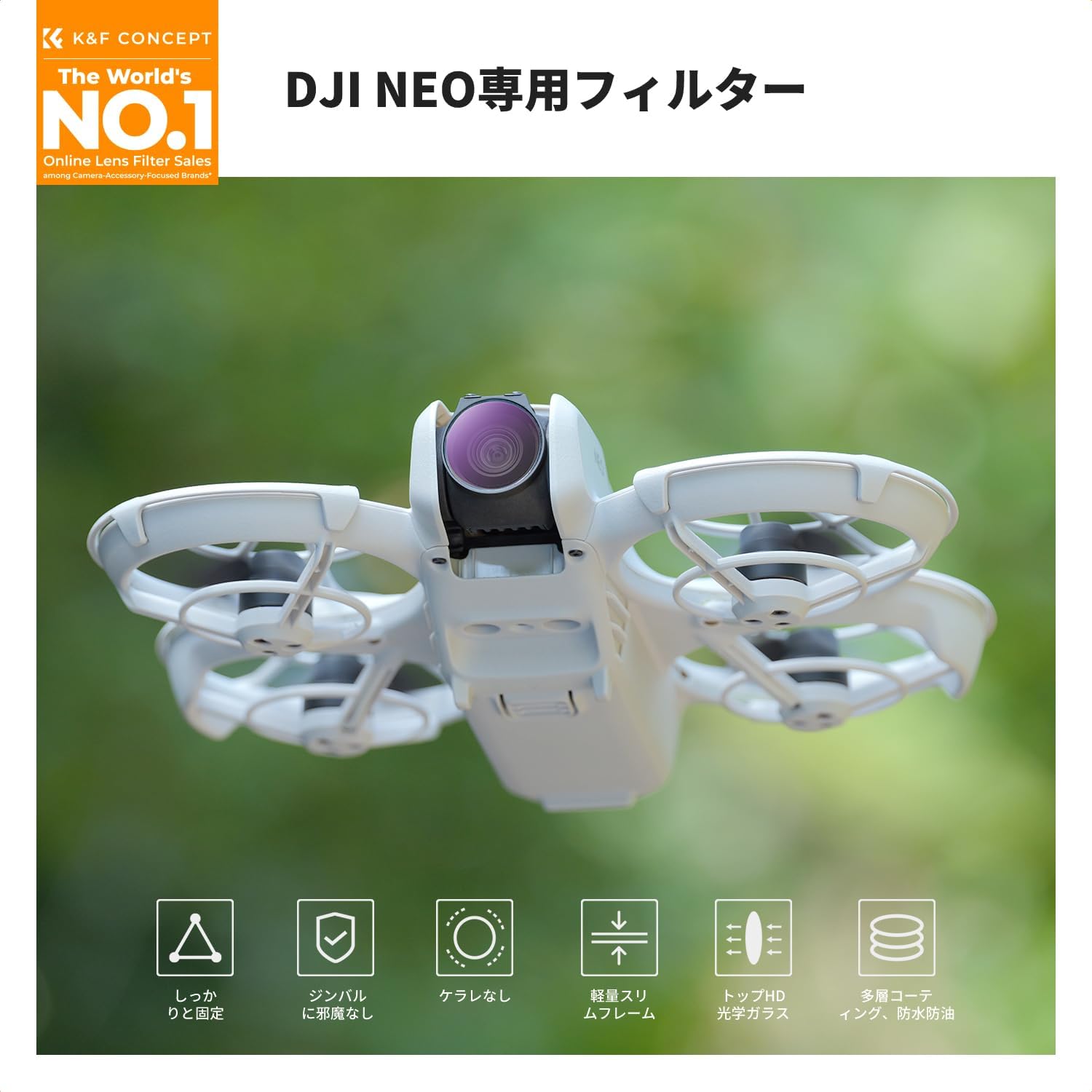 - 【DJI NEO 専用フィルターセット】K&F Concept DJI NEO専用フィルターセットには、反射光を除去して色彩を鮮やかにするCPLフィルター、明るい環境でもシャッタースピードをコントロールするND8/16フィルターが含まれています。