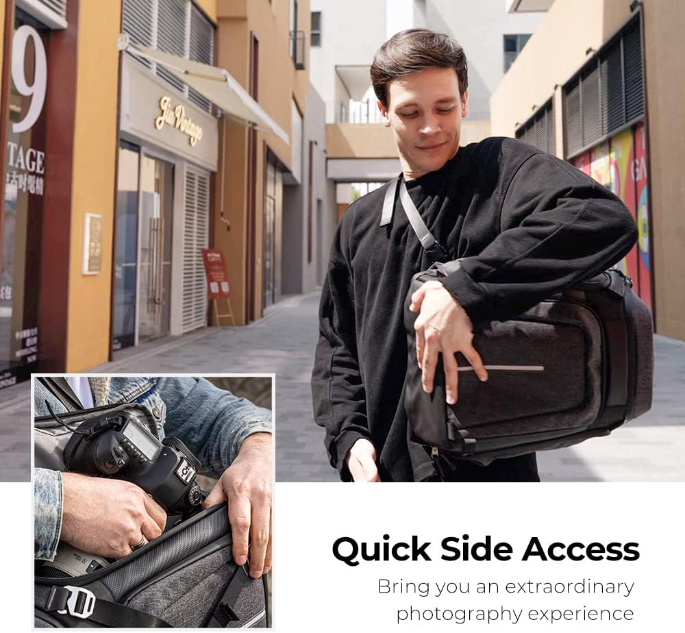 - 【快適さに焦点を当てる】 すべてのカメラ機器を持ち運ぶと重くなったり熱くなったりすることがわかっていました。そのため、パッド入りのショルダーストラップと内部サポートを設計し、重量を分散し、熱を素早く放散します。 これらはすべて、より快適な写真撮影体験ができるように設計されています。