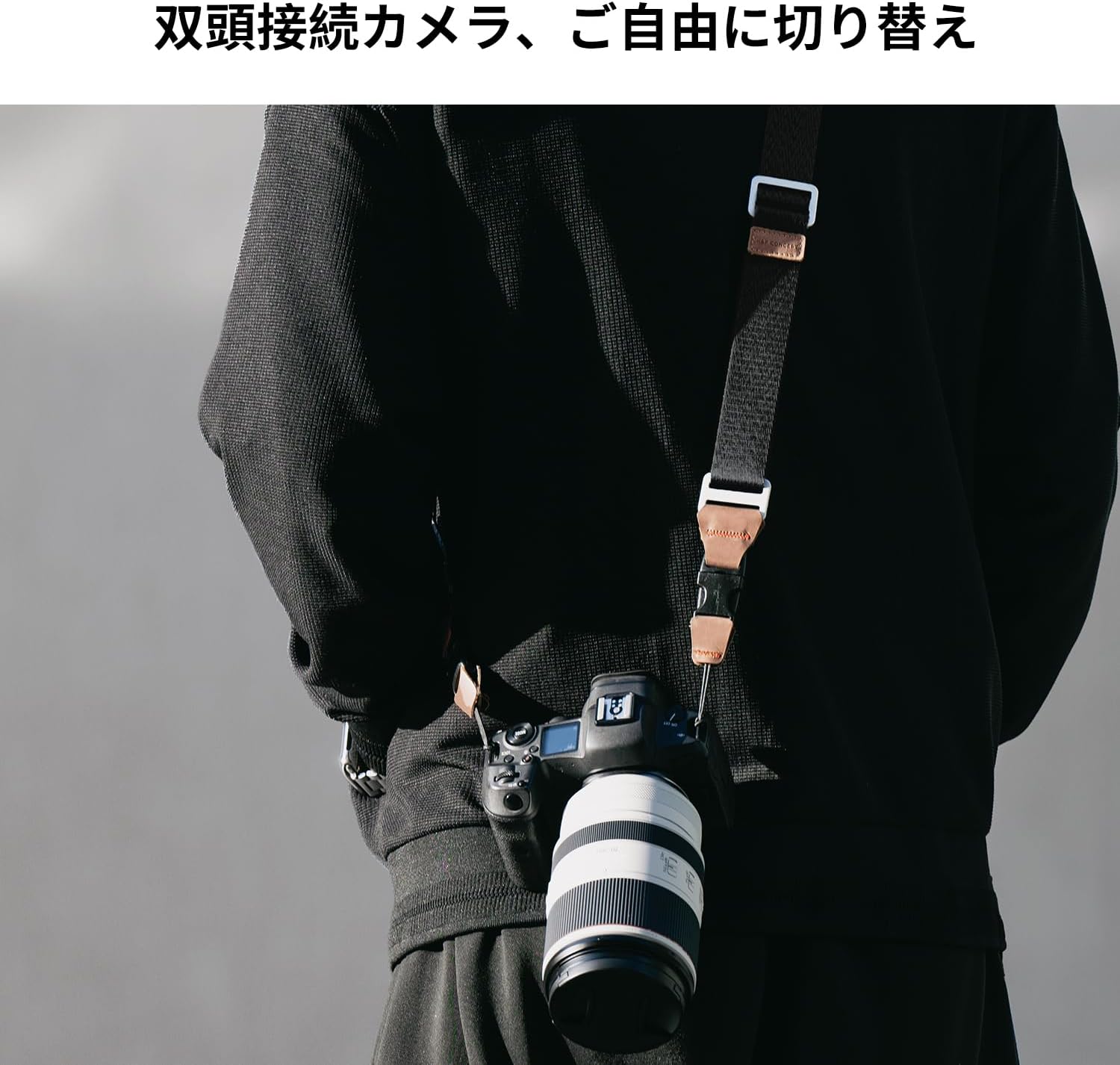 - 【高い安全性と便利性】不意の脱落を防ぐ独自のロック機構を採用しています。望遠鏡、ドローンリモコンなど他の機器を携帯できます。三脚を使用する場合は、カメラ ショルダーストラップをすばやく取り外すことができます。持ち運び時に短時間でカメラを手に入れる可能、美しい瞬間を捉えることができます。