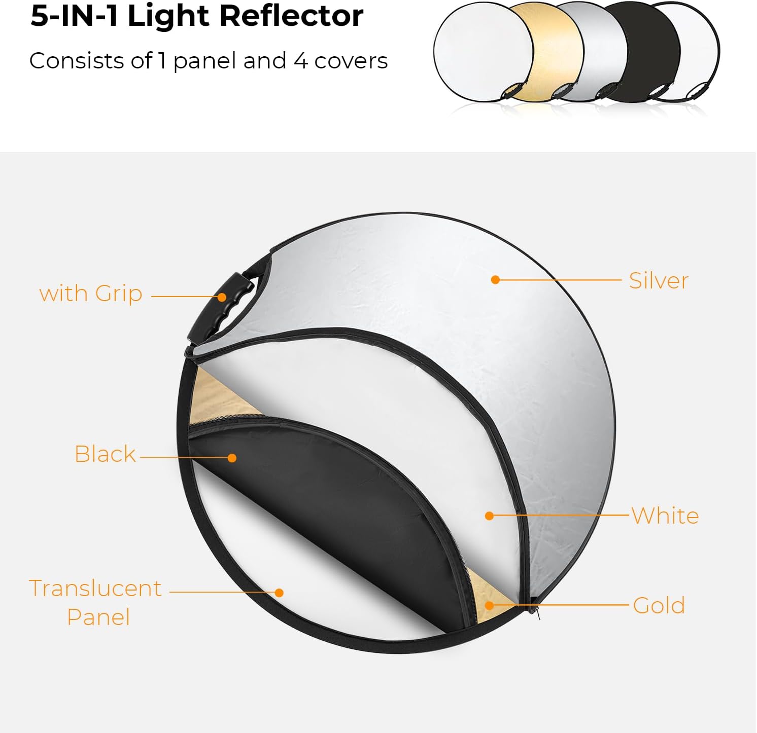 110cm 5-in-1 Light Reflector with Grip