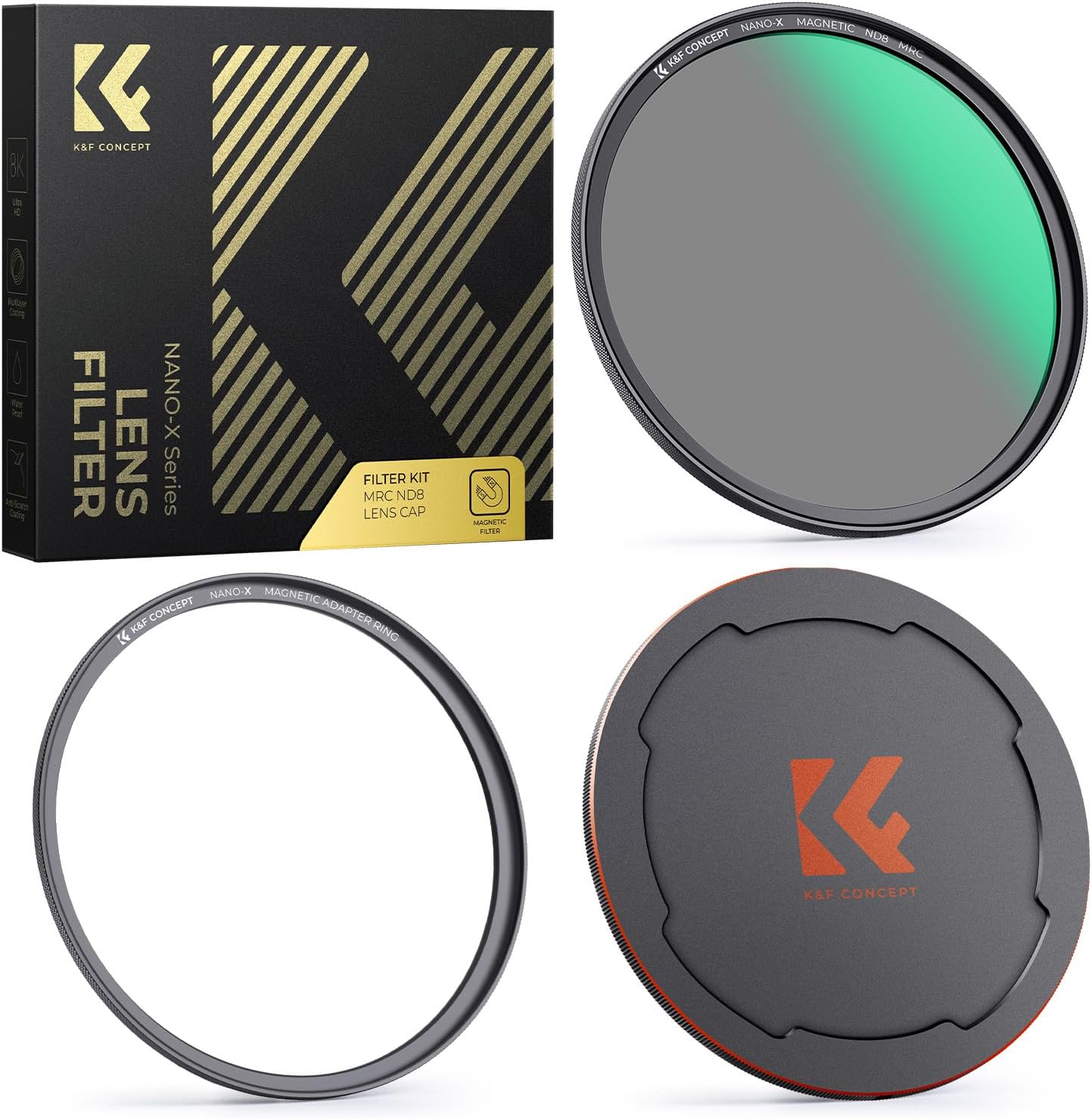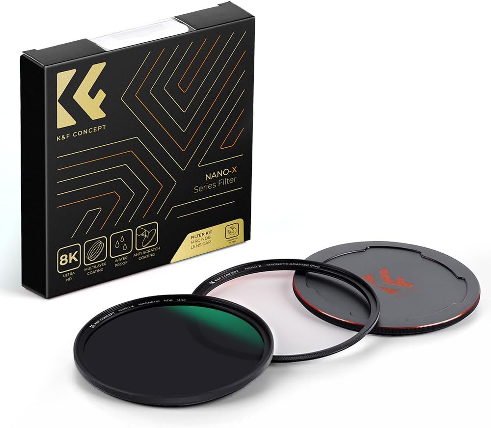 - 【Magnetic ND8 Filter】K&F Concept Fixed ND8 Filter (3 Stop) lets you capture motion blur depth of field effects. Great for landscape photography and cinematic effects in videography.