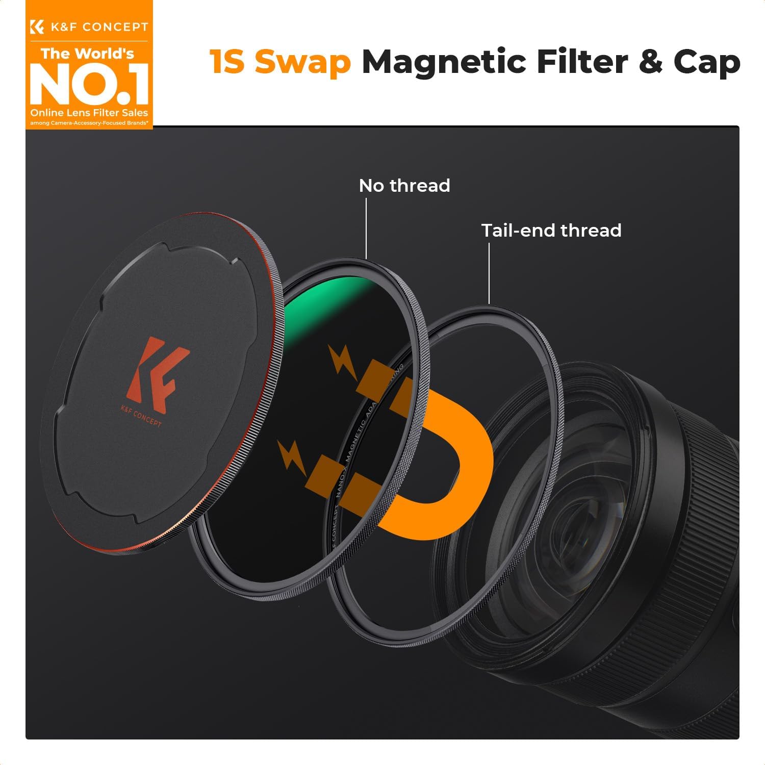 - 【1 Second Swap】Magnetic attraction helps install the filter in one second, reduces scratches and damage to the lens thread, 5.3mm ultra-slim CNC-non slip aluminum-magnesium alloy frame easily grips the filter, and no vignetting on wide-angle lenses.