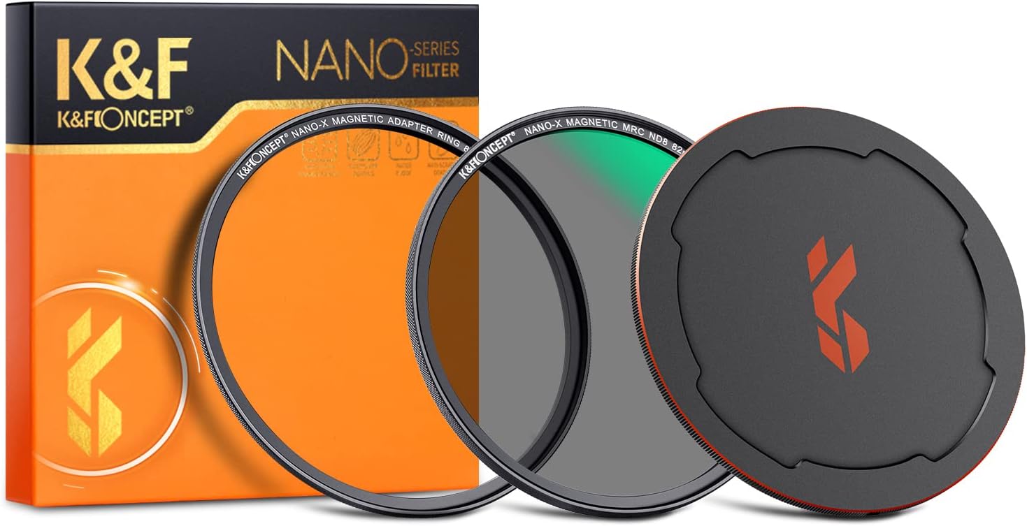 - 【Magnetic ND8 Filter】K&F Concept Fixed ND8 Filter (3 Stop) lets you capture motion blur depth of field effects. Great for landscape photography and cinematic effects in videography.