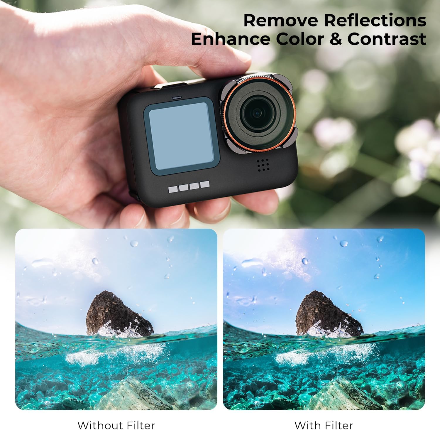 - 【色とコントラストを向上】CPLフィルターは、水やガラスなどの非金属表面の反射を排除し、色とコントラストを高め、深く豊かな景色の画像を作成します。