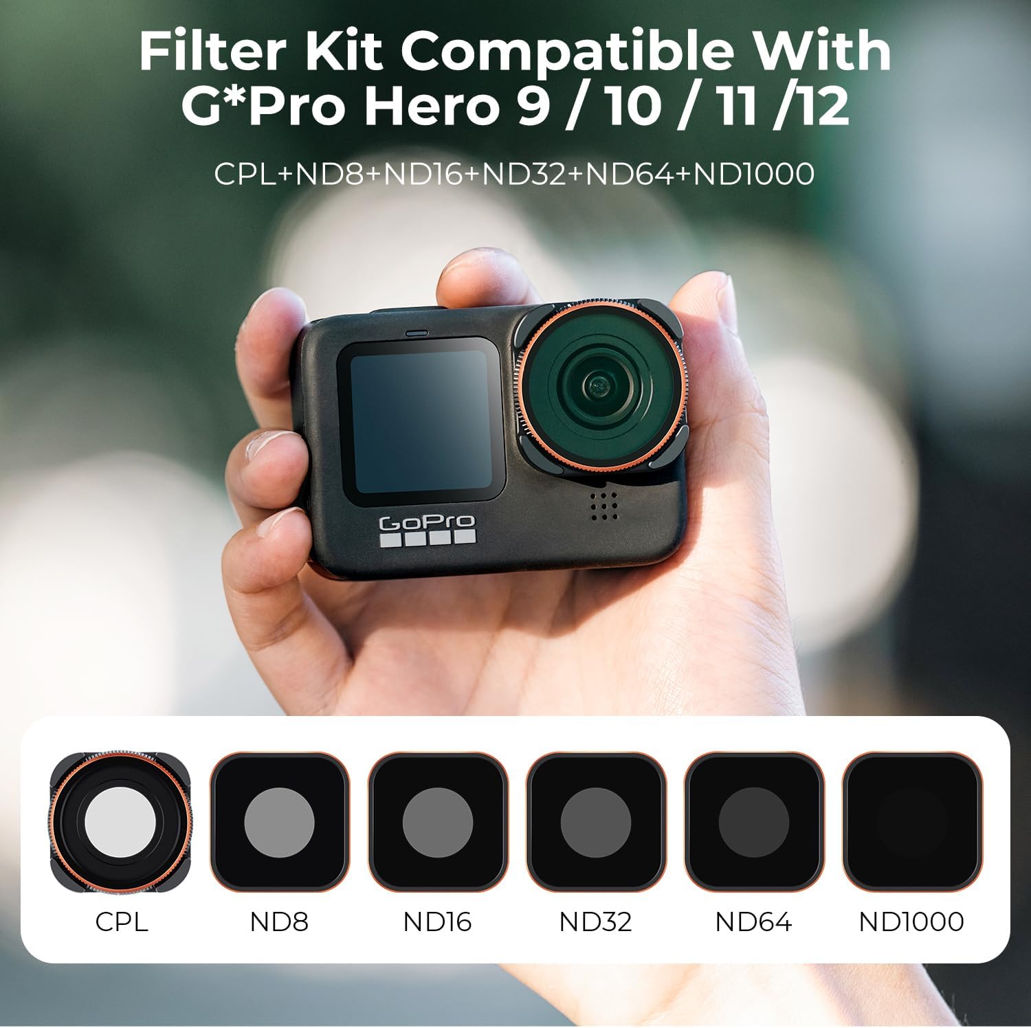 - 【互換性】K&F Concept CPL + ND 8 + ND 16 + ND 32 + ND64 + ND1000 レンズフィルターキット、GoPro Hero 12 Hero 11 Hero 10 Hero 9 Blackカメラ用に精密に設計されています。