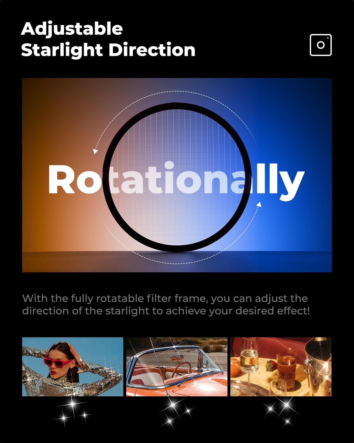 • 【4-6-8スターライン】4ポイント、6ポイント、8ポイントのスターラインが特徴で、撮影条件やクリエイティブな好みに基づいてスターライト効果を調整し、正確で芸術的な構成を可能にします。